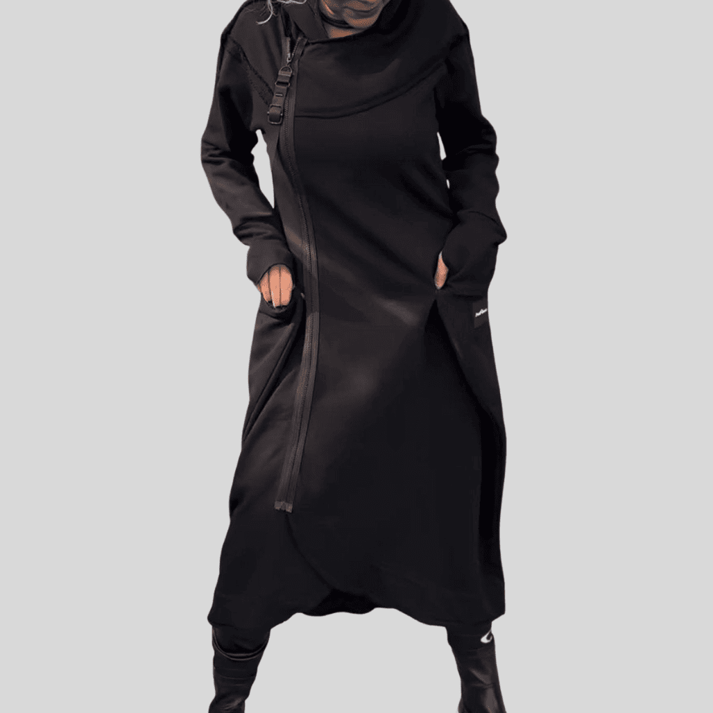 Klara | Sukienka z kapturem z długimi rękawami i asymetrycznym dołem